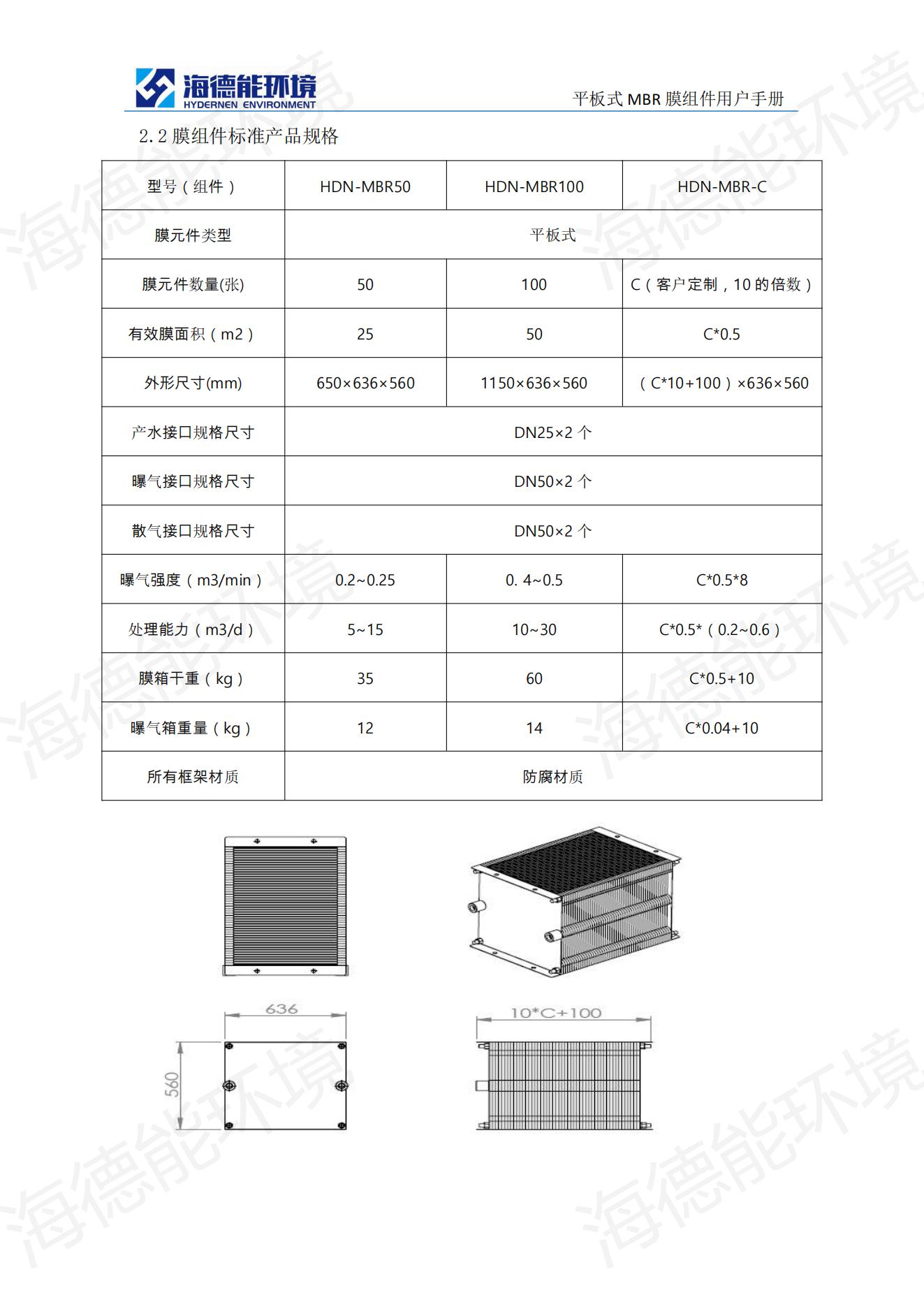 平板式MBR膜參數